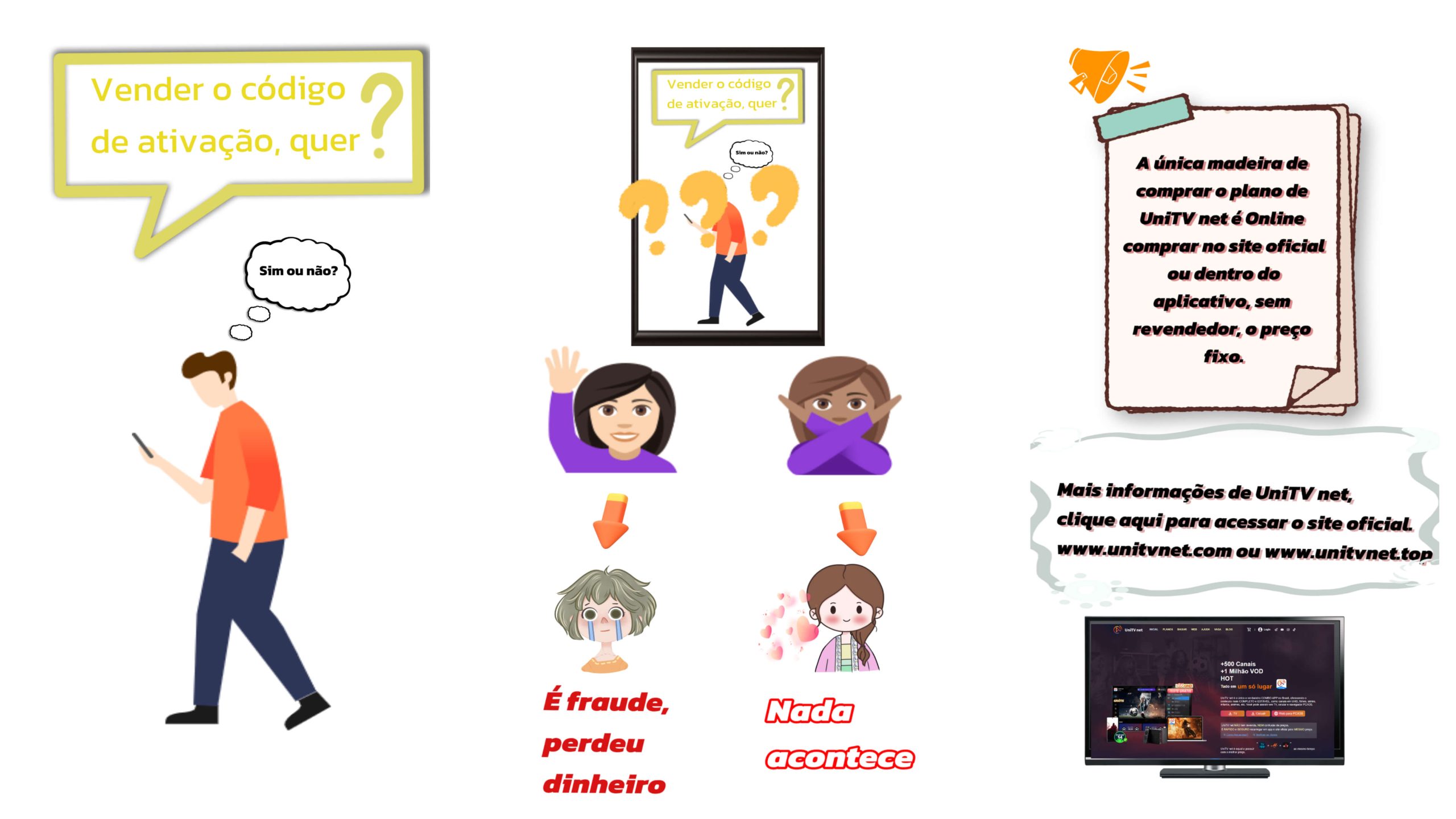 UniTV net não tem revendedores. Você pode comprar planos em TV, Celular, Web e no Site Oficial (www.unitvnetoficial.vip).